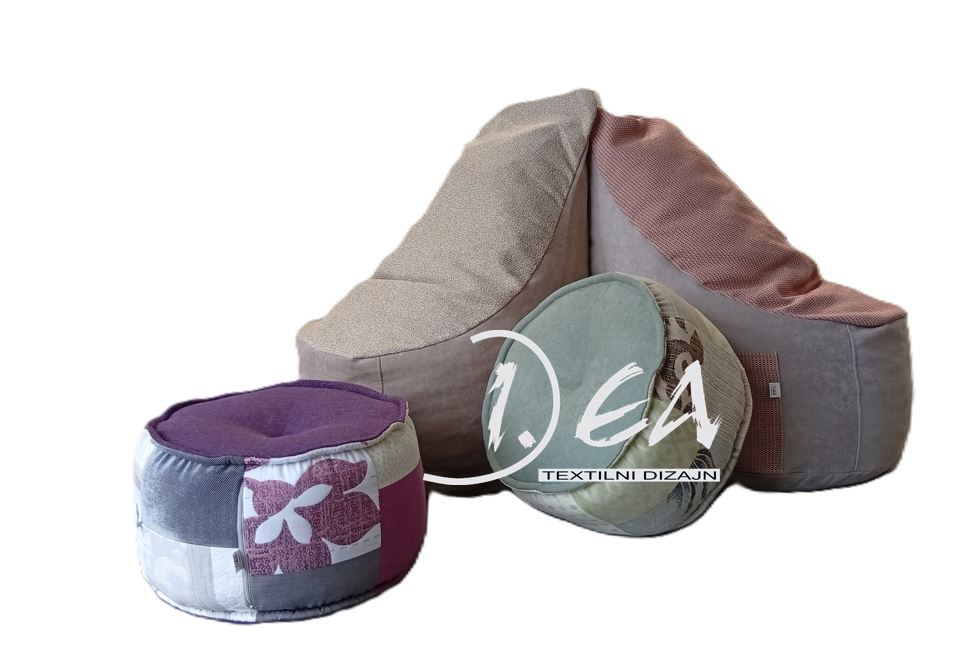 Vreće su punjenje sjeckanom spužvom. Uslijed proizvodnje vanjskih jastuka za sjedenje i tapeciranja namještaja, često nam ostaju komadići spužve različitih dimenzija, oblika i kvalitete koje ne možemo upotrijebiti ni za što pa smo im pronašli novu namjenu.